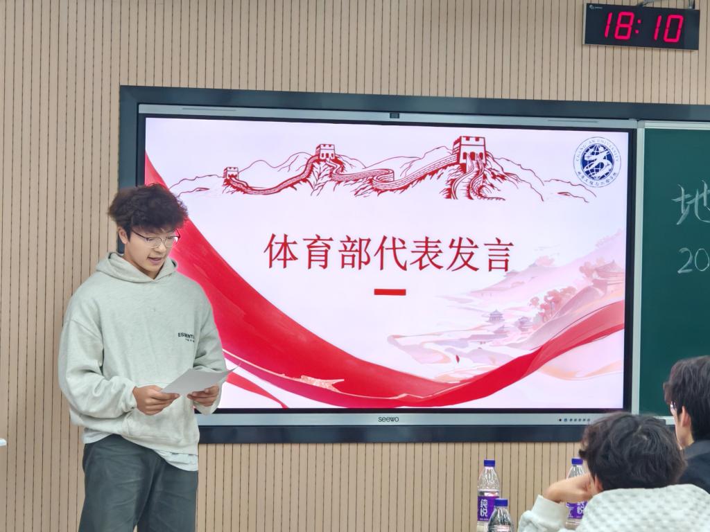 各部门汇报结束后,指导老师史杨季结合会议内容作总结讲话。他对协会上一阶段的工作成果给予肯定,同时针对新学年发展规划提出三点建议:一是要进一步强化“部门协同”意识,确保活动从策划到落地高效衔接;二是要深度挖掘“地测特色”,让文体活动成为展现学院风貌、凝聚学子力量的载体;三是要重视社员反馈,及时调整工作方式,让协会真正成为服务学生成长的平台。