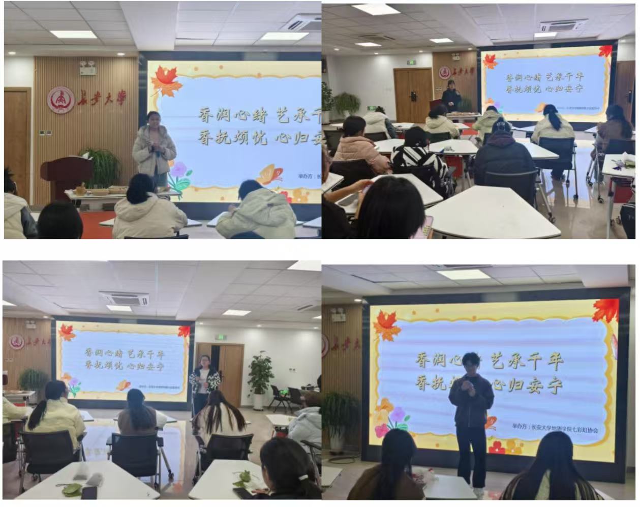 彩虹心理协会于2025年11月26日19:00在北校区朝晖园一站式学生社区团体活动室举办了“闻香识心”香囊手作活动,30余名同学参与其中。