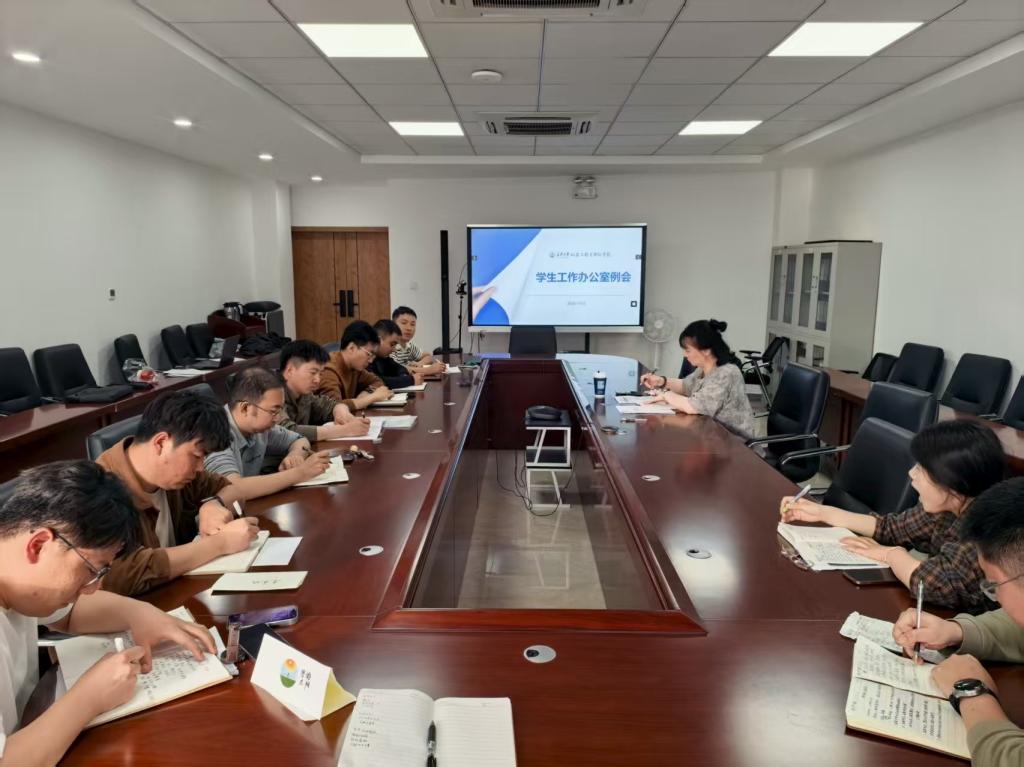 学生工作办公室于4月10日下午在北校区朝晖园社区会议室召开专题例会,学院党委副书记潘迎和学生工作办公室全体辅导员参会。