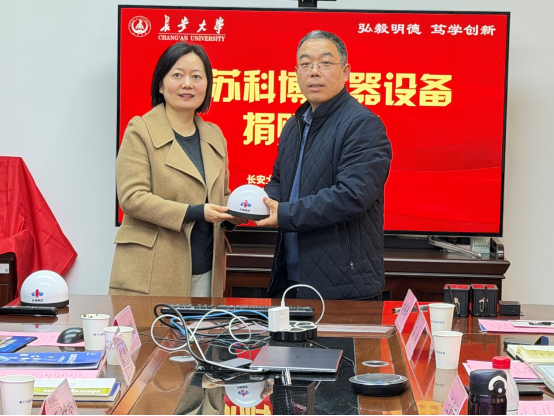 杨红斌与王新志代表双方签署了产学研合作协议,并向校友王新志颁发了捐赠证书。党委书记王树莹代表学院接受了仪器捐赠,本次捐赠的北斗仪器设备将为勾引