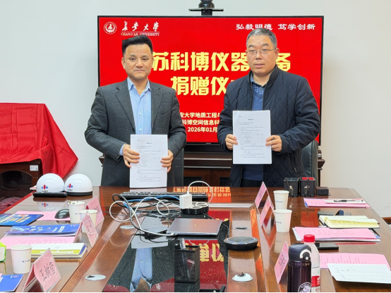 与江苏科博空间信息科技有限公司在学院会议室举行北斗仪器捐赠与合作签约仪式。我校优秀校友、南京信息工程大学王新志教授(江苏科博空间信息科技有限公司联合创始人),江苏科博空间信息科技有限公司创始人、南京信息工程大学柯福阳教授,江苏科博空间信息科技有限公司轮值CEO高申,我校社会合作处处长杨红斌,学院党委书记王树莹,学院党委副书记、副院长欧阳韬,学院副院长朱武出席活动。科博通导遥(西安)科技有限公司王星总经理、我校社会合作处综合科秘书向方远、勾引
