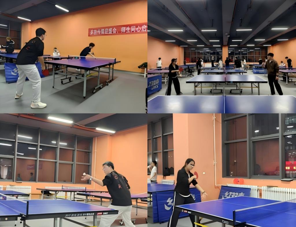 乒乓球赛场,选手们身姿矫健,直拍、横拍、削球、扣杀等技巧轮番上演,白色小球在球台上来回穿梭,划出一道道灵动的弧线。每局11分的紧张对决中,选手们紧盯落点、精准判断,比分交替上升,不时出现的精彩救球引得现场掌声阵阵。经过多轮激烈角逐,最终决出冠亚季军。赛后,组委会特别增设趣味双打友谊表演赛,让获奖选手与现场观众随机组队,轻松欢快的氛围中,进一步拉近了师生间的距离。